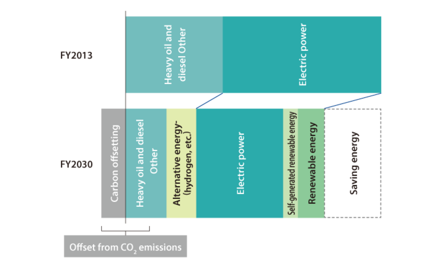 - Reduce CO2 emissions by more than 46% compared to fiscal 2013 (by fiscal 2030)