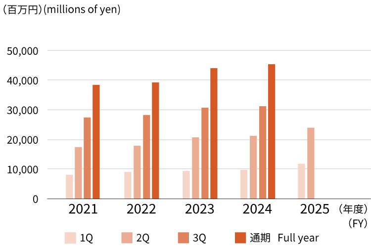| 通期 | 38,241 | 39,851 | 43,104 | 45,545 | |