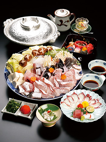 クエ鍋プラン・イメージ(前菜(五種盛)、クエ薄造り、クエ鍋 等)