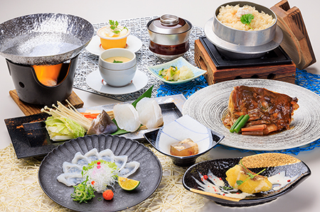 天然クエミニ会席プラン・イメージ(クエ煮凝り、クエ薄造り、クエ小鍋、クエ釜飯 等)