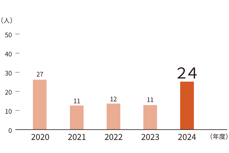 2023年度には管理職としての採用も実現し、当社グループ全体で活躍の場を広げています。2024年度の外国人財の雇用者数は73人に達しました。